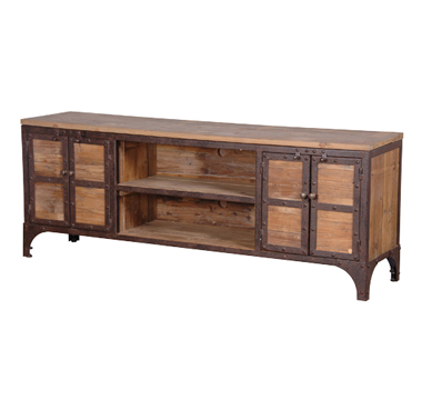 Industrial Style Reclaimed Wooden and Iron Framed One Shelf Two Doors Low Height TV Cabinet. |