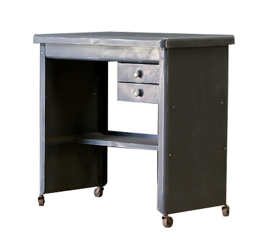 Industrial Style Iron Two Drawers One Shelf Study Table with Four Iorn Wheels at the Bottom |